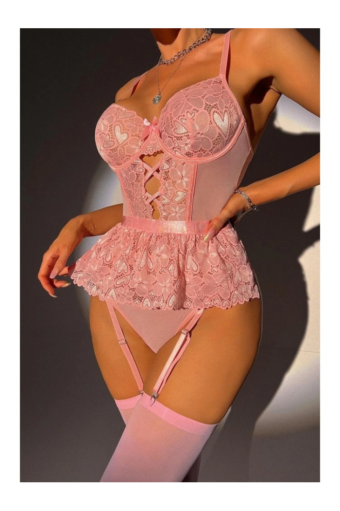 For Dreams 8412 Dantel Büstiyer ve Jartiyer Takım