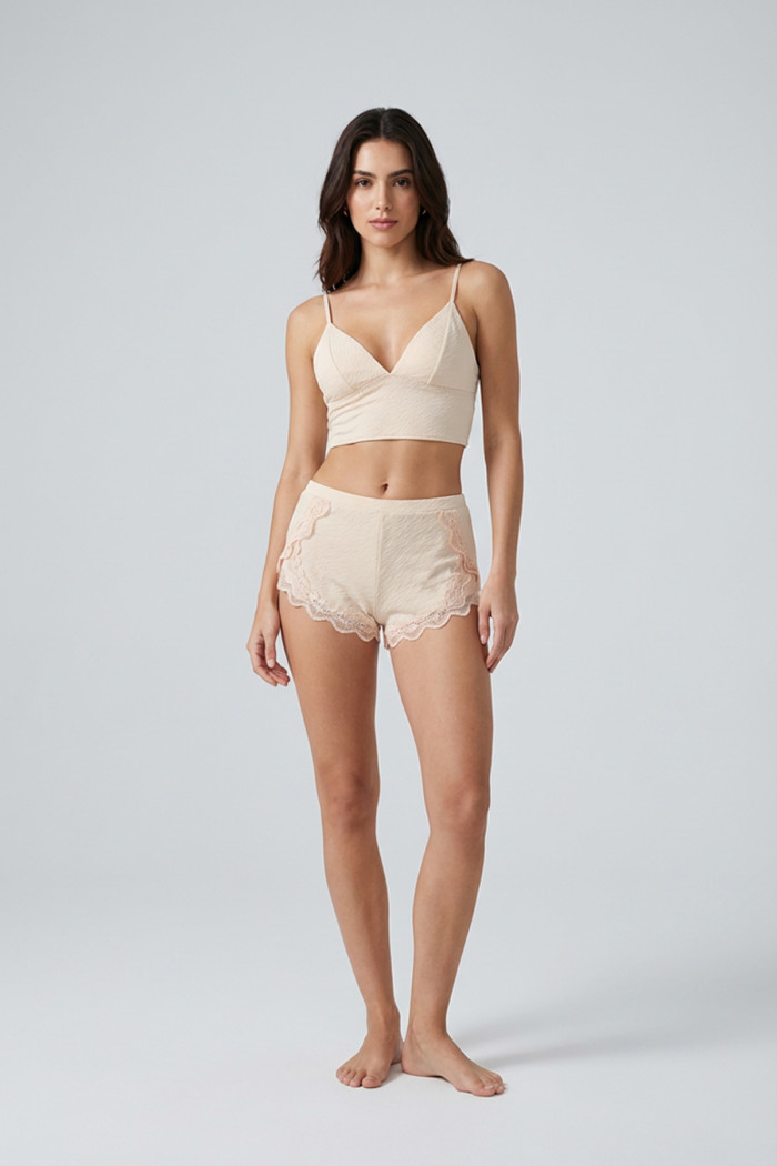 Ekru Lcralı Babydoll Şortlu Takım - 319