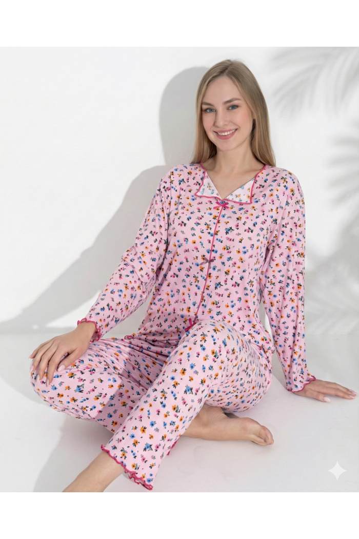 Boyraz 0367 Kadın Raporlu Uzun Kol Pijama Takımı