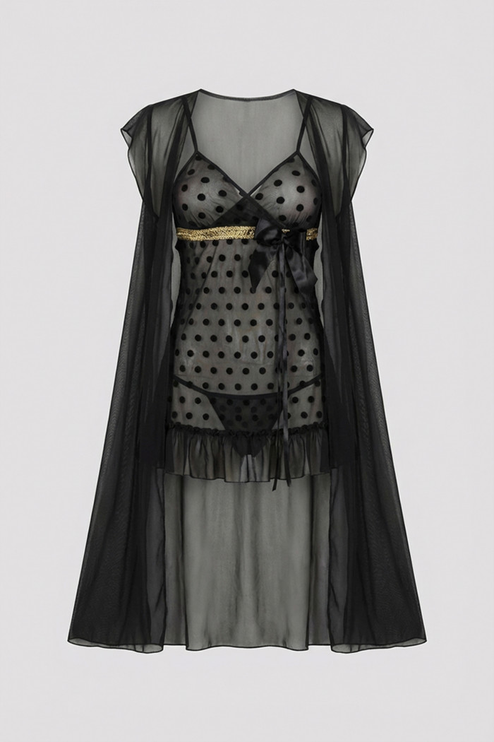 Siyah Dantelli Sabahlık & Gecelik Takım 2' Li - 1405