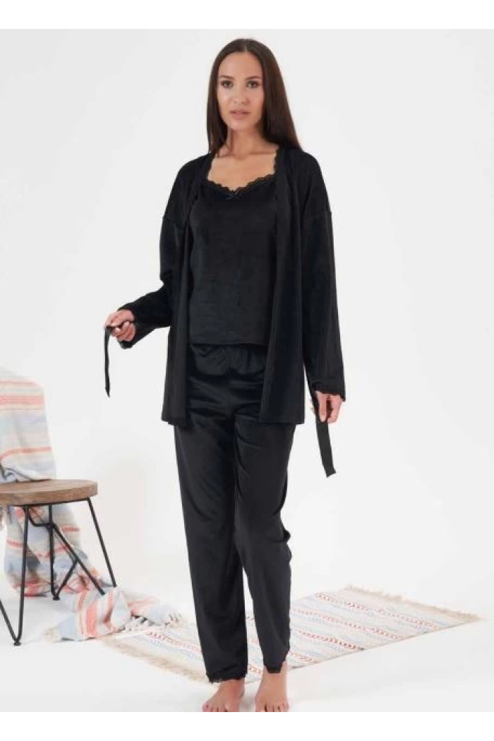Estiva 24397 Bayan Kadife 3'lü Pijama Takım