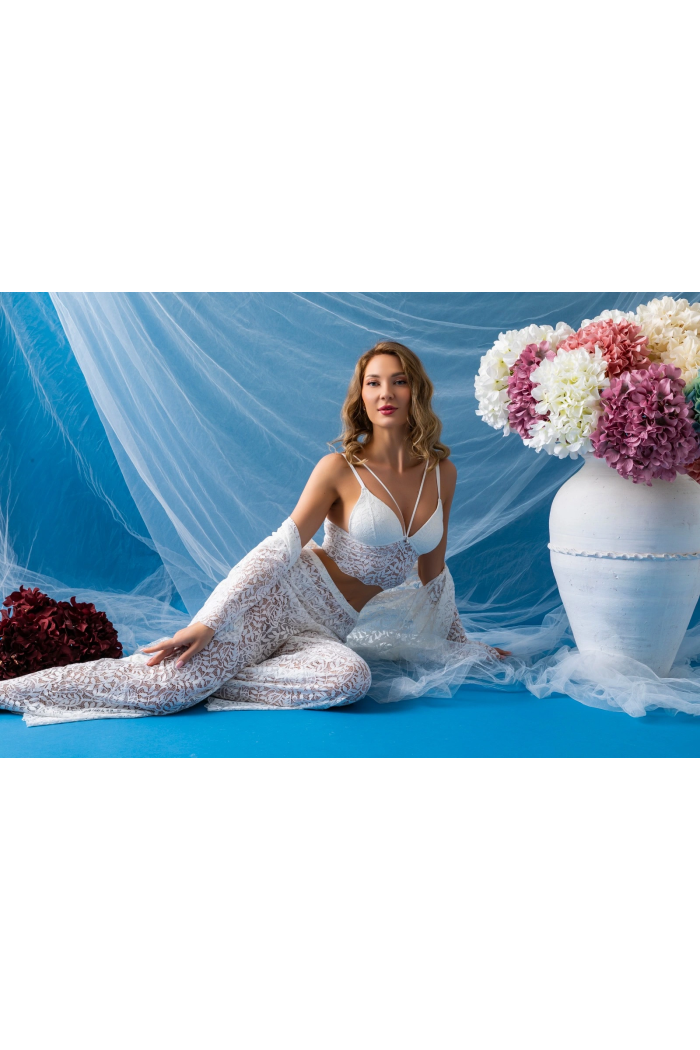 Gallipoli 32334 Kadın Danteelli Sabahlık Bralet, Pantolon Takım