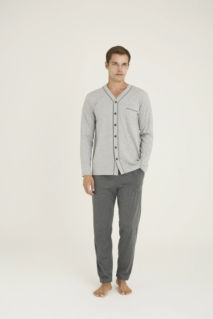 Kocabey 9267 Erkek V.Yaka Boydan Düğmeli Pijama Takım
